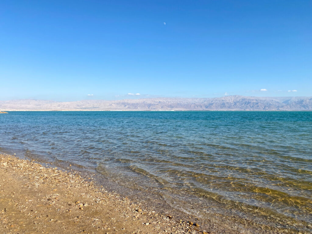 Handige tips voor een bezoek aan de Dode Zee: De grond doet erg zeer aan je blote voeten dus het is aan te raden om waterschoentjes mee te nemen. Ook raad ik je aan om na het dobberen je goed af te spoelen met water. Je huid kan namelijk gaan irriteren door het enorm zoute water. Neem ook genoeg water mee.